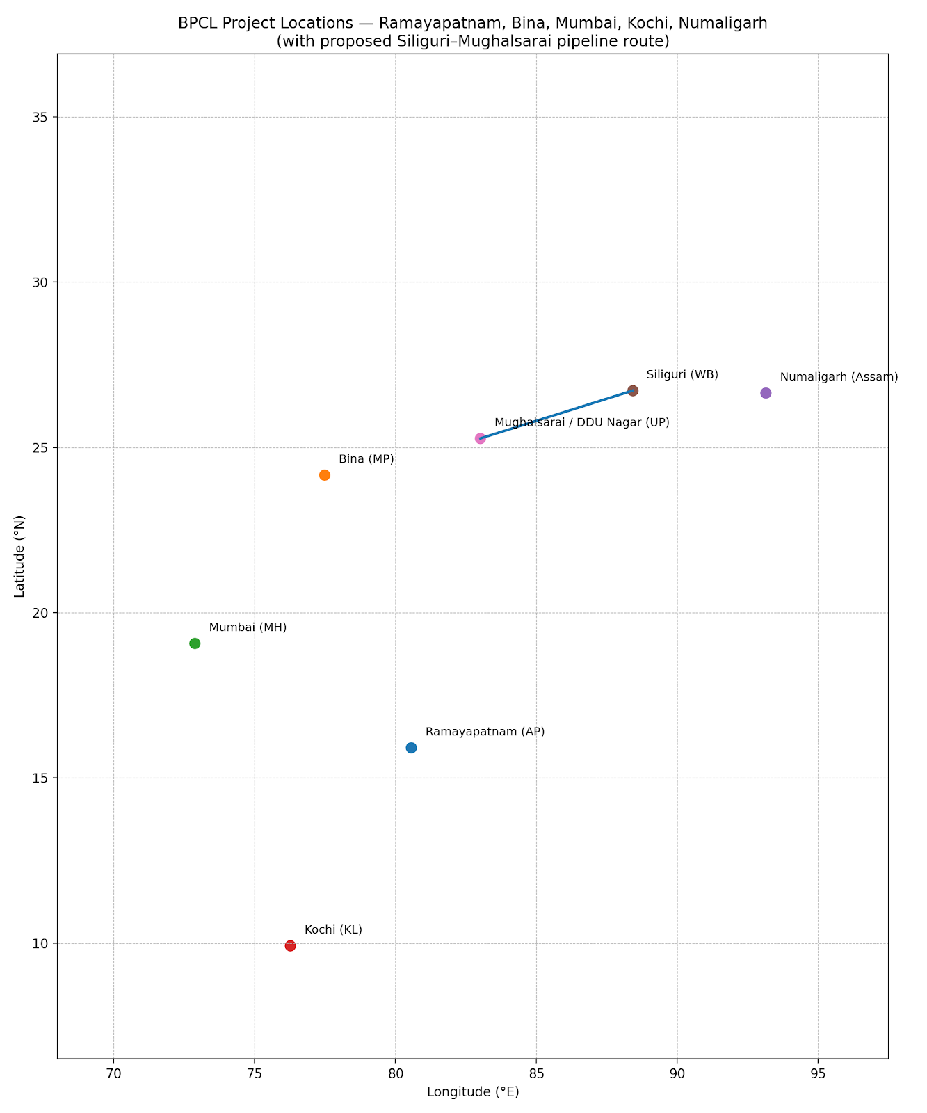 | Siliguri–Mughalasarai Product Pipeline | Multi-product pipeline (MS, HSD, ATF) supporting BPCL–OIL–NRL logistics integration | ~₹35 billion (≈ US $0.4 billion) | Mid-to-late 2020s |
